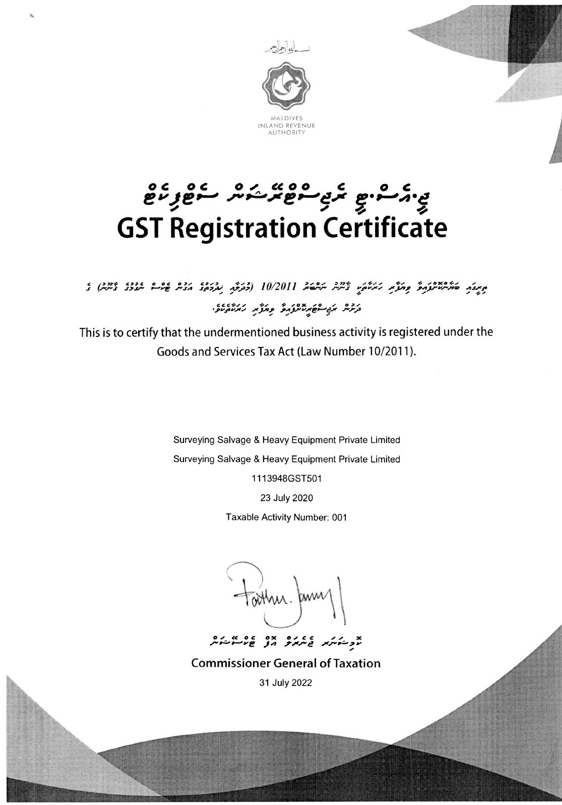 SURVEYING SALVAGE & HEAVY EQUIPMENT PVT LTD